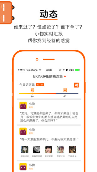 系统实时记录你的朋友们在小店里购买、来访、抢店铺红包等行为,并及时向您汇报小店经营状况;