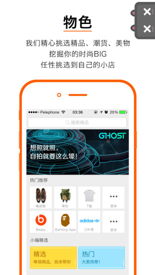 物色iPhone版是一款让你零(bú)成(yào)本(qián)、超(bù)省(fā)心(huò)实现“开间小店,贩卖美好”的梦想。通过物色可以一键分享到你的社交平台,帮助好友寻找消费潮流、展现自己时尚逼格、挖掘自己买手眼光独到的潜力。赶快下载体验吧!!