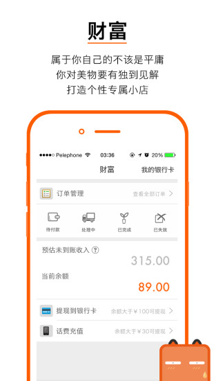 可实时查看订单及收入,收益可银行卡提现、充值话费;