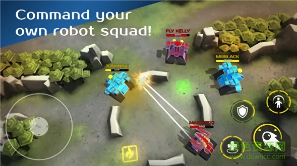 2、轻松控制你的机器人,超级直观的游戏操作,使用各种武器装备来对抗。
