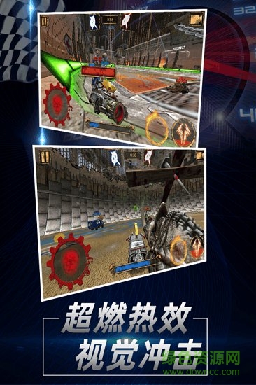 你需要灵活控制自己的赛车,将球撞进对手的大门。当然,比赛中允许使用任何武器!你也可以使用炸弹将你的对手炸上天!发射冷冻波将他们冻在原地,甚至操纵时间控制比赛!大逃杀模式会让你明白生存的意义!
