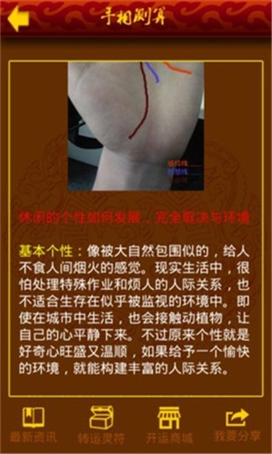 看这里,看这里,看看你的生命线有多长,知晓预知生命的长度,在有限的时间创造更大的价值,看看你的事业线有没有波折,怎样可以乘风破浪,在事业海洋里一帆风顺,看看你的婚姻线,学业,预知在你自己身边的运程小秘密!