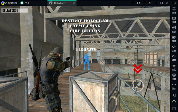 5、然后点击右下位置的射击按钮,瞄准虚拟假人进行射击即可,完后基础教学后玩家就可以在游戏中开始冒险了。