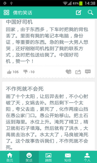 6、即时分享:每条段子都设有顶和倒的功能,用户可以实时评论和分享。