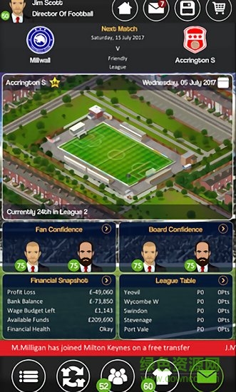 足球俱乐部经理18是一款模拟经营类足球经理游戏,在游戏中你将成为一名足球经理,带领你的球队拿到世界冠军,你可以在青年训练营培养人才,在可以花大手笔在自由市场收购球星,你甚至可以自己创建一个足球俱乐部,带领你的球员一步一步走向巅峰!