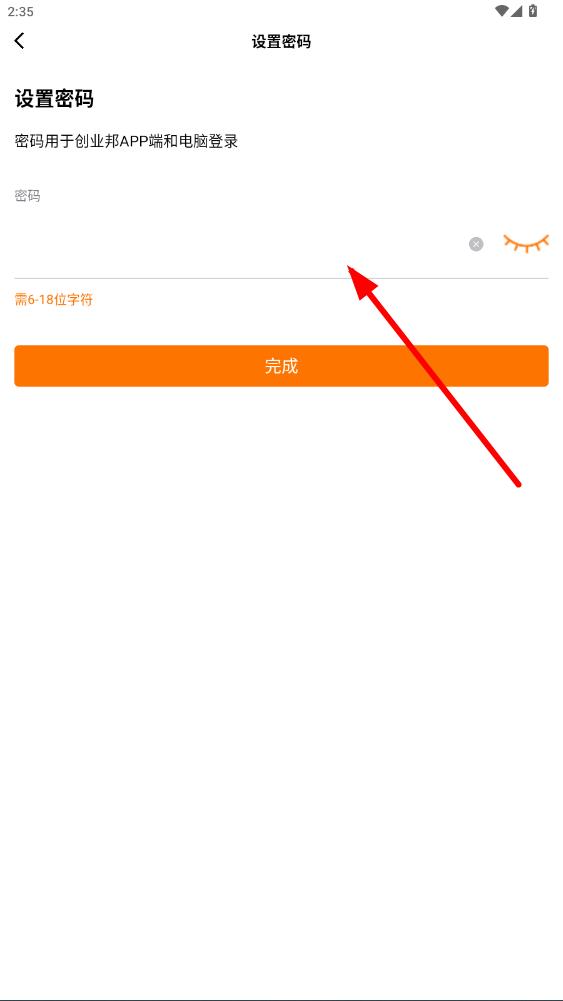 4、在设置密码页面,输入6-18位字符的密码,然后点击完成按钮,即可完成密码设置。