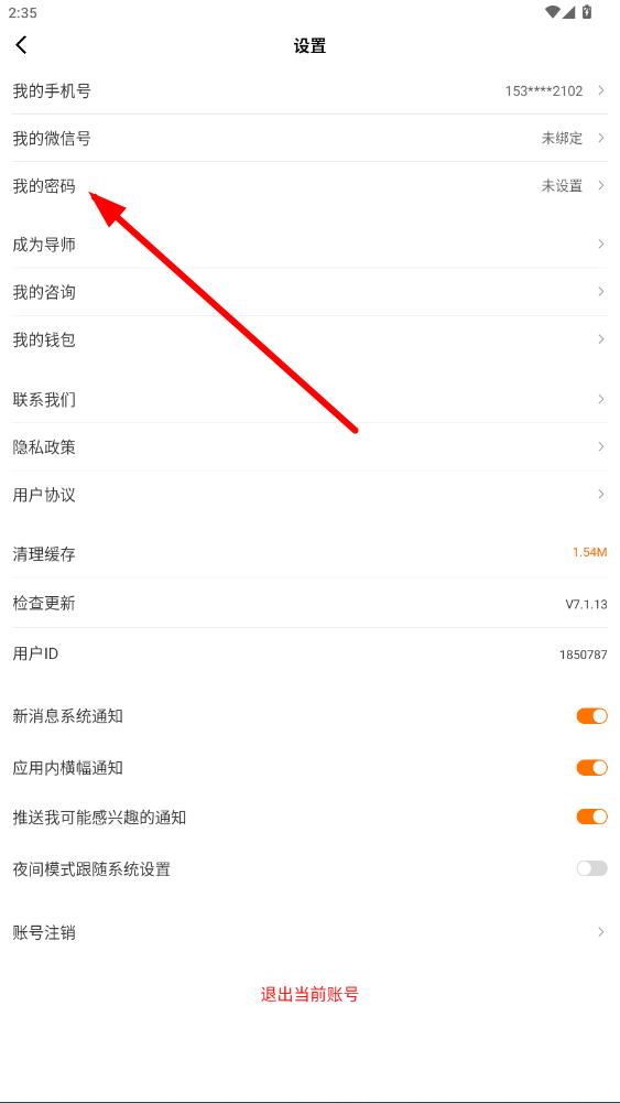 3、在设置界面里,点击我的密码选项,进入设置密码页面。