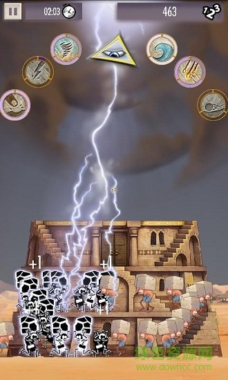 通天塔大灾难游戏中作为万能的神你将主宰一切,站在高空注视着人类所有的动作,只用轻轻点击屏幕即可发生巨大的法力,提高你的法力,来防止成功搭建塔顶的人类,可以各种法力来惩罚人类,喜欢的玩家快到绿色资源网下载体验吧!