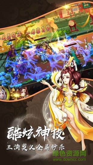 5、手动连消技能,爆发奥义瞬杀杀敌:全新的连消技能玩法,在枯燥的战斗中增加了三消的休闲策略,在简单的操作中爆发最强奥义技能,敌军瞬间灰飞烟灭!根据战况手动消除技能,预判BOSS大招释放奥义打断,策略玩法体现得淋漓尽致!