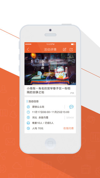 我去活动iPhone版是一款可以直接订阅一些感兴趣的活动组织者或者组织机构的手机app。在这里不再众里寻他,郊区游,同城户外,海量活动,应有尽有。并且帮你找到有趣的活动,帮你打发碎片化时间,帮你找到更多志同道合的朋友。赶快下载体验吧!!!