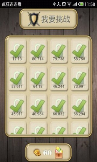 疯狂连连看app是一款益智休闲类游戏,完全免费,道具可通过玩家PK获取 周末挑战赛增加实物奖品全球首创连连看挑战系统全球首创连连看竞技场功能疯狂连连看,这不是一款传统的连连看,此游戏最大的特点就是对战系统和道具系统。道具分为时间奖励,时间处罚,刷新奖励,提示奖励,禁手等等等,道具均为随机出现。还有强大的社区,排行榜,交友系统期待你的参与,游戏因你而精彩!!!