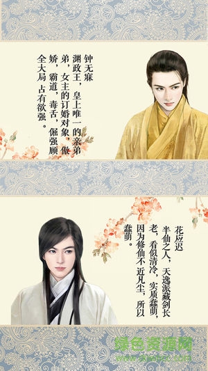 21世纪无节操的好色宅女在睡了一觉之后竟意外穿越到另一个帅哥云集的架空世界,身份竟然由死阿宅一跃成为身份尊贵的宰相千金!可这好日子还没享受一天,父亲竟就告知她马上就要被皇上赐婚了,然而赐婚的对象却是傲娇又喜欢虐待的亲王。本以为能在古代安然无恙的你,却接二连三的发生了惊险的事情,游戏中,作为女主的你需要解决突发事件又要查清楚这阴谋背后的真相,慢慢就会发现,原来自己并非宰相亲生。那么,我到底是谁?