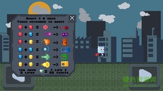 超级果汁机是一款像素风格的休闲射击手游,游戏的画面非常的复古简洁,你作为超级果汁机英雄必须抵抗各种各样的敌人,而从天上掉下来的五颜六色的宝石就是你的能量,利用收集到的能量可以对敌人进行毁灭性的打击,快来下载体验吧!