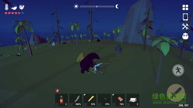 9、真实的昼夜交替和天气变化系统,除了能够探索荒岛之外,还能够建造小船在海面狩猎。