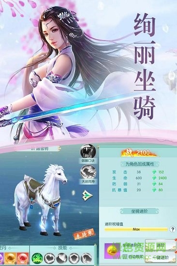 坐骑培养:消耗坐骑进阶丹可以对坐骑进行属性培养,可获得大量属性加成。