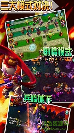 1.创新多模式多玩法:经典剧情塔防+兵临城下+单挑敌将,百玩不厌,考验你的智慧,更让你过足手瘾!