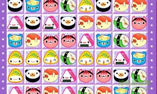 有趣味、老少皆宜的休闲小游戏。游戏开始后,选择两个相邻的寿司图进行交换后,如果出现三个以上相同寿司图片连成一横线或竖线时会消去并且得分;上方的寿司图依次下落。
