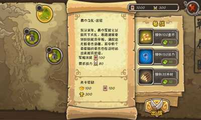2.进入战斗界面,可以看到任务要求、需求战力和军粮消耗,还有关卡奖励