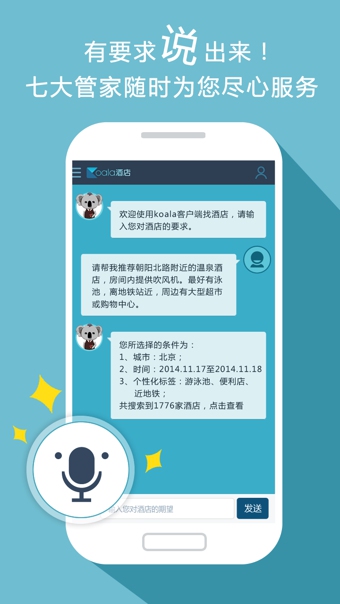 考拉酒店是一款酒店预订类软件,你可以在这里挑选自己需要的酒店入住,或者了解你周边的酒店信息。比较有趣的是,这款软件中的7只小考拉会以非常萌的状态给你不一样的订酒店体验。7只各具本领的呆萌考拉阅读了所有酒店的点评数据,并以此为依据帮您推荐您最想要的酒店,彻底告别选个城市选个星级找酒店的时代!
