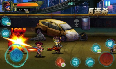 2、游戏的操作很简单,在屏幕上会出现很多的虚拟键,左下角为方向,上方有切换子弹和治疗的按钮