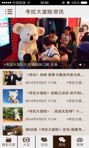 3.联动热门社区,所有剧照、视频、资讯、活动均可带评论转发,让您及时方便与朋友分享喜悦;时时呈现《考拉大冒险》官方微博讯息,特别关注,专属享受。