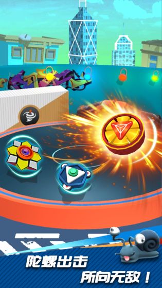 2、你可以选择各种功能强大的陀螺,只有用激烈的火力才能快速的摧毁对手;