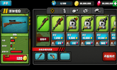 2、在武器界面。玩家通过无限金币或者钻石任意购买各种枪支武器、装备等;