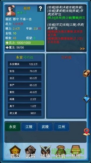 请量力而为,约战战力较低的武将,以在下一轮战胜他,获得金钱、装备、兵法.