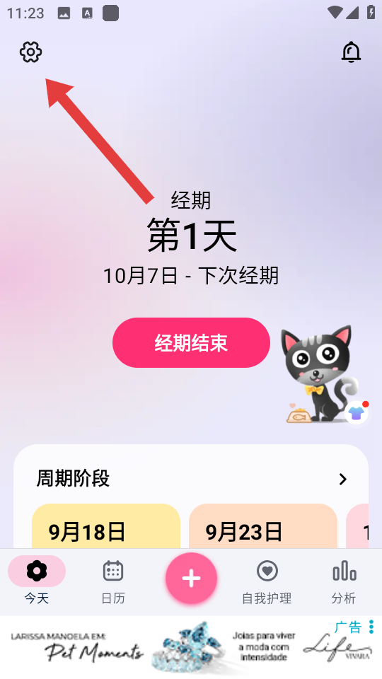 1、打开小月历APP,在主界面点击左上角的齿轮状设置图标,进入设置页面。