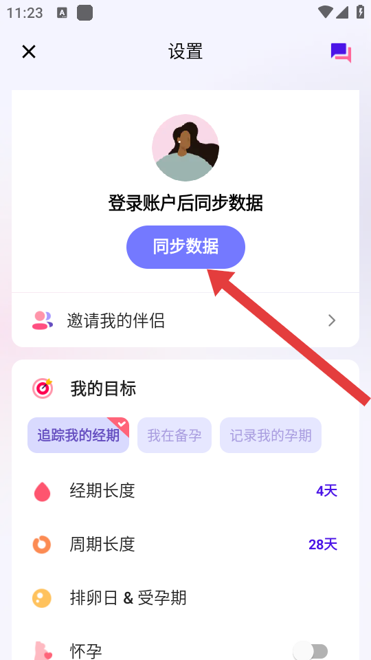 2、在设置的页面中,点击同步数据的选项,进入数据备份和恢复界面。