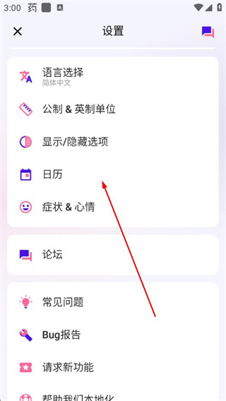 1、打开小月历App的今天页面,点击左上角的设置图标,进入设置页面。