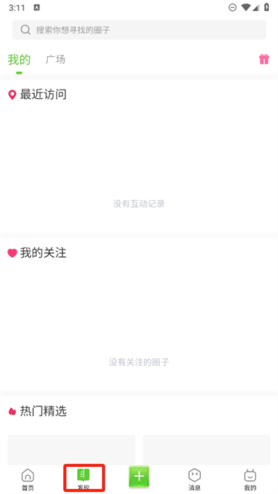 2、进入软件后进入发现页面即可查看关注的动态信息,还有最近访问和关注动态等信息查看;