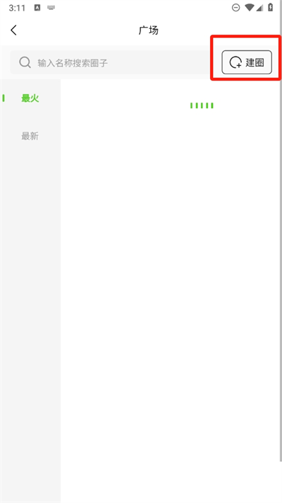 4、然后进入广场后我们就可以看到最新或者最热的圈子,同时在最右边可以看到有建圈点击进入即可建立了。