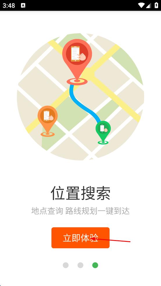 1、打开掌上交通软件,看到“位置搜索 地点查询 路线规划一键到达”的宣传界面,点击“立即体验”按钮,进入软件主界面。