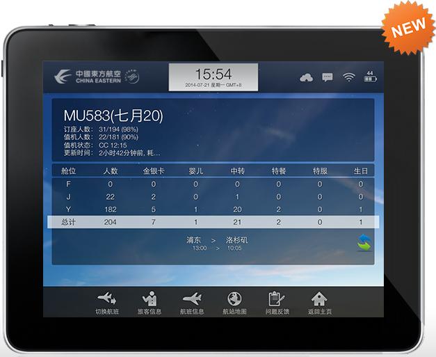 东航目前为每一位客舱经理和乘务长配发了一台iPad平板电脑,并在电脑上安装了“东航移动客舱”等系统软件,令东航“移动客舱”服务更上层楼。