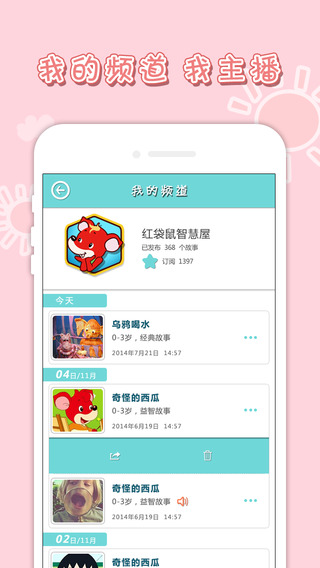 每个人都是自己的频道主播,讲故事、做记录、做资讯报导、做知识讲解,做课程,只要你愿意就可以随时随地的录制和发布自己的作品。