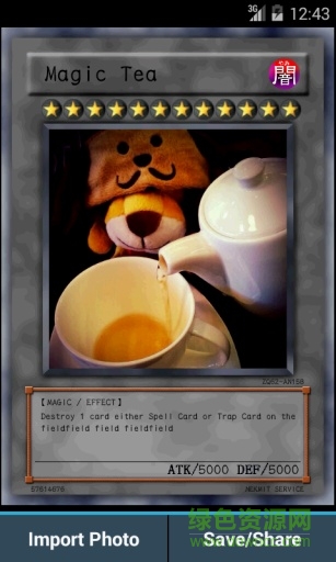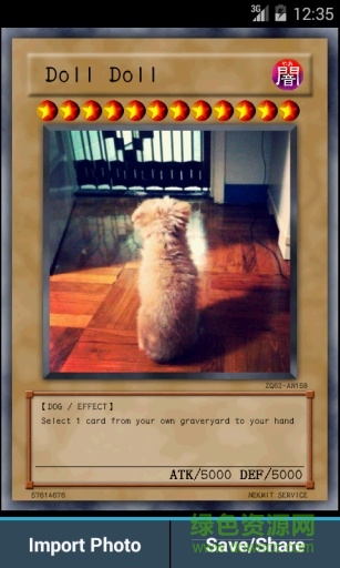 游戏卡牌制作器可以上传你自己照片制作成为第一无二的游戏王卡牌,而且还能自己给自己编辑出来图片效果,让你第一时间看到自己亲手做的卡牌,非常的具有成就感,喜欢这个应用玩家快来绿色资源网下载吧!