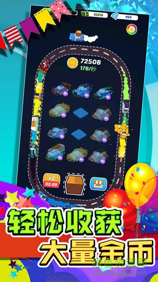 游戏中相同等级的两辆赛车可以合成更高等级的赛车,高级赛车拥有更快的速度,产出更多的金币!