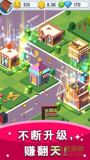 商业街是很多人都在玩的模拟经营类游戏,游戏开始,你只有一块小地皮,玩家需要看准市场上的行情,来开设相关的建筑,通过慢慢的发展,扩大土地经营的范围,来赚取更多的金币钱财,感兴趣的朋友就来绿色资源网下载体验!