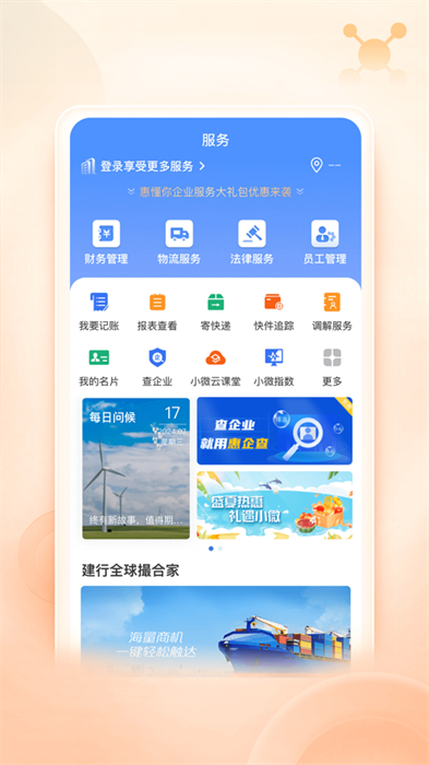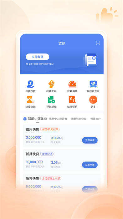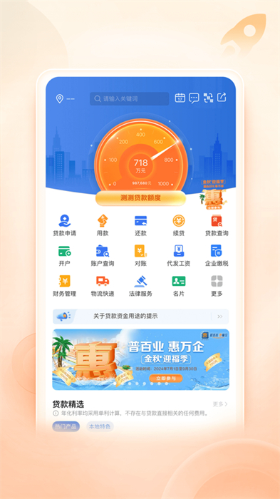 这是一款建行通过运用互联网、大数据等新技术,为小微企业提供贷款服务的互联网金融应用。客户可在线实时测算贷款额度,了解丰富的贷款产品,享受在线预约开立企业账户,在线办理小微快贷的一站式服务。