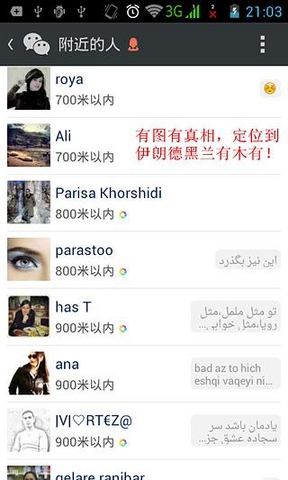 启动应用,在地图上设定你的地理位置,点击左上角的定位按钮;点击右上角菜单按钮选择启动微信,找到附近的人。