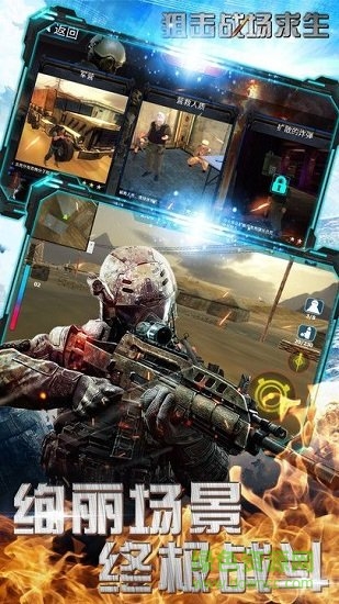 狙击战场求生游戏中你是一名反恐部队的一名精英成员,由于你请假刚回只有你一人,战友都执行任务了,但是现在上级下达了一个任务,需要去剿灭敌人的巢穴,并解救出里面的人质,一身正气的你义无反顾的独自一人拿着枪去了前线,踏上了战场,这里有众多的敌人,你是选择浴血奋战,还是解救人质,突出重围求生呢,在这里你需要深入敌后,击杀他们阻止恐怖分子的阴谋,一款超好玩的第一人称射击游戏不容错过。