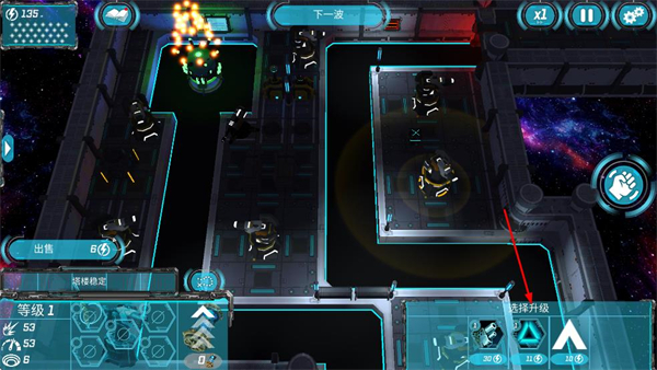 4、待一波敌人被消灭后,点击已部署的防御单位,选择升级选项提升其作战能力。
