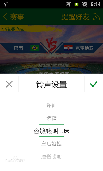可以在关注的赛事之前点击设置闹钟,而进入详细的设置环节时,大家可以选择各种各样不同风格的铃声,这里有林姐姐叫你起床、唐僧唠叨、白娘子、疯狂搓我等等,可谓是个性十足。除了软件自带的铃声之外,我们还可以选用手机本身自带的铃声来进行设置。