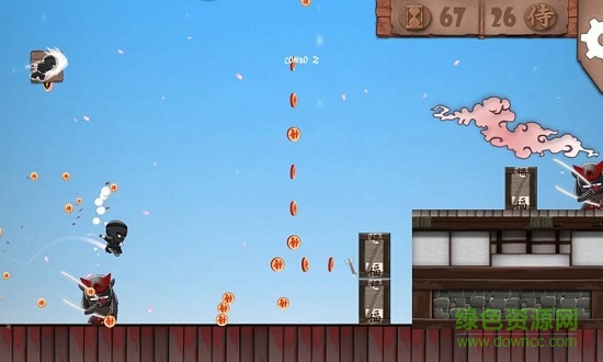 四种忍者敌人 - 用你的忍者刀或者跳在他们上面为了摧毁他们 – 找出办法摧毁所有的他们!
