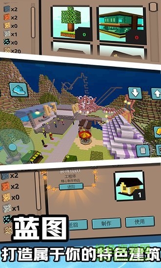 2.游戏中有上百种不同风格的方块,还有各种特色家具,设施,装饰等等,有数十种不同种类的蓝图,能够帮助你快速便捷的建设设施,你也可以利用各种方块来打造独特的建筑,将游乐园按照你的创意自由建设成你心目中的样子。