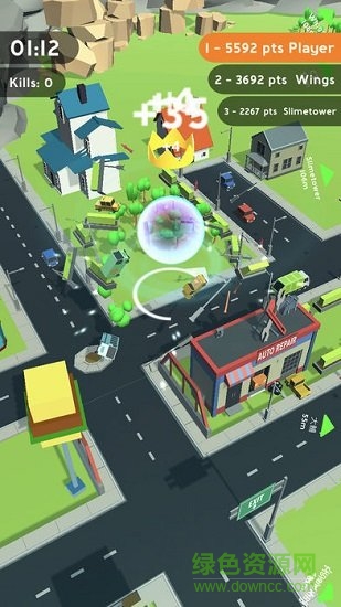 台风大作战内购是模拟台风的io对战游戏,玩家需要控制台风的运行路径来让他不断地吞噬各种比你小的台风,还有村庄等,慢慢的变成巨型台风,但是山峰以及地形是对你最大的阻碍,维持好风力继续进攻,你就是那个最强大的台风,感兴趣的朋友就来绿色资源网下载体验!