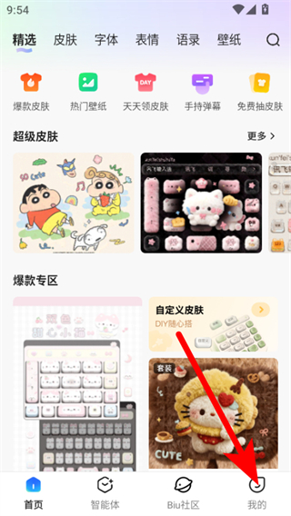 1、打开讯飞输入法,进入我的页面,点击皮肤。