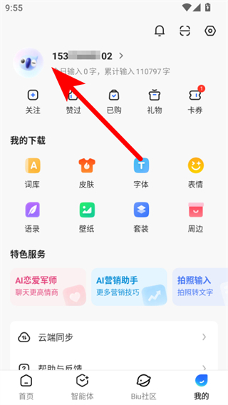 1、打开讯飞输入法app,点击底部导航栏的我的选项,进入个人中心页面。