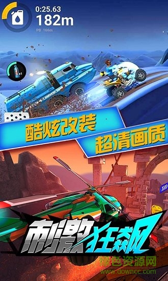 刺激狂飙是一款卡通风格的2d赛车手游,作为巨大变形钢筋的延伸,独特的变形系统,是世界当中的巨无霸。刺激狂飙手游通过4个巨大的车轮让玩家们再一次看到大脚车的雄伟和震撼,刺激狂飙游戏采用了真实物理引擎,独特的四轮巨无霸赛车,不同形态自由切换,挑战高难度赛道,非常车技,极限加速。完成游戏任务,获得奖励,还可以解锁全新酷炫赛车。